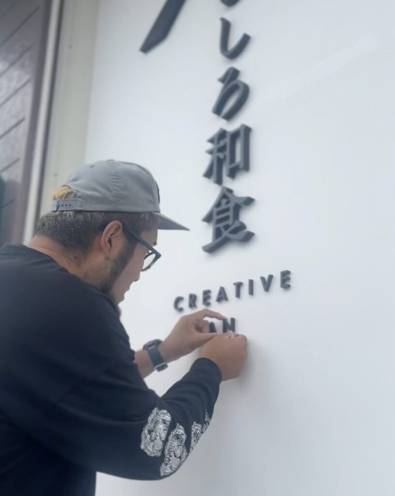黒のカルプ切文字で魅せる むしろ和食様の外観デザイン